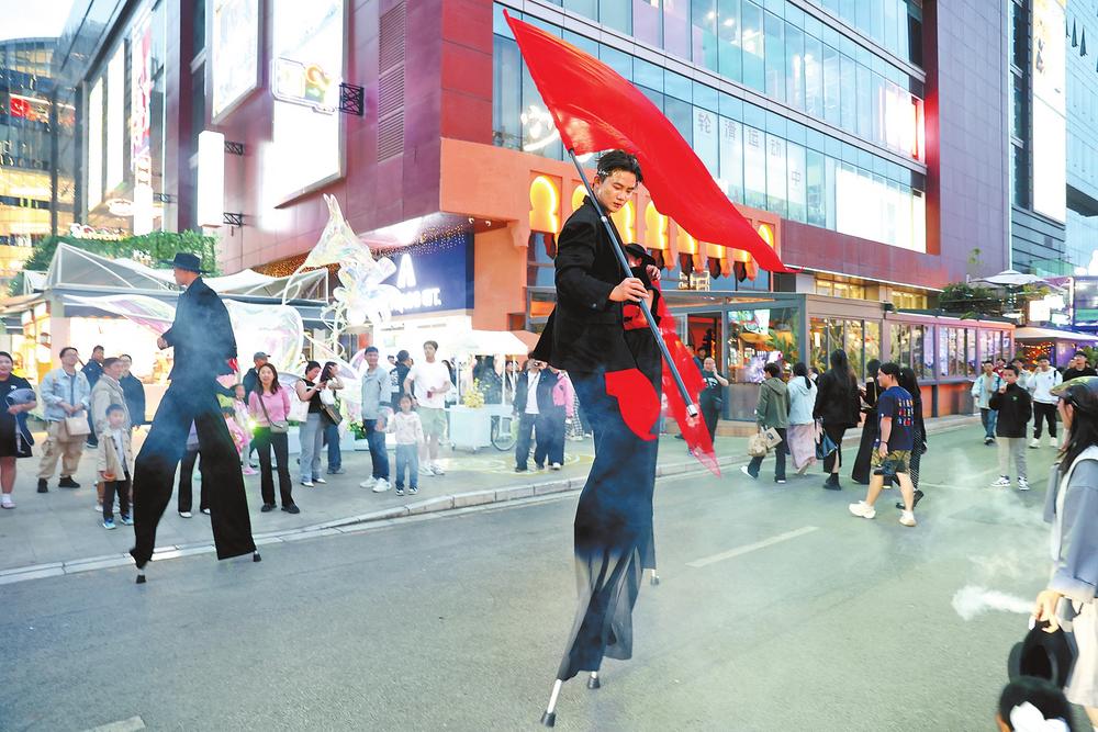 呈貢商業(yè)區(qū)的街頭表演。本報記者 陳飛 攝
