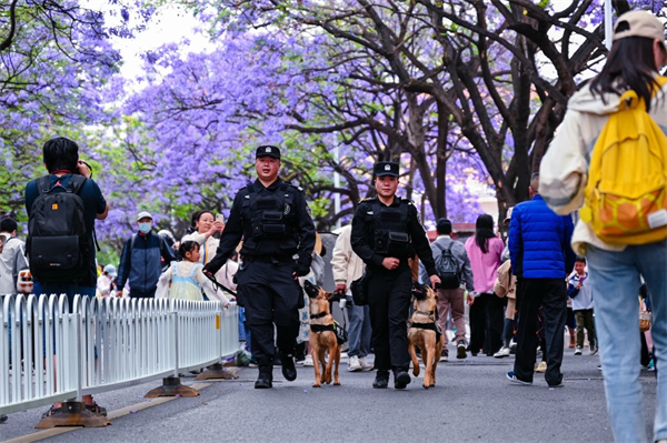 為確保“五一”期間核心賞花區(qū)治安和諧穩(wěn)定,昆明公安執(zhí)勤警力開展連續(xù)12小時不間斷巡邏,同時積極發(fā)動春城“紅袖標”治安志愿者共同守護,最大限度提升街面見警率、管事率,給群眾“看得見的安全感”。