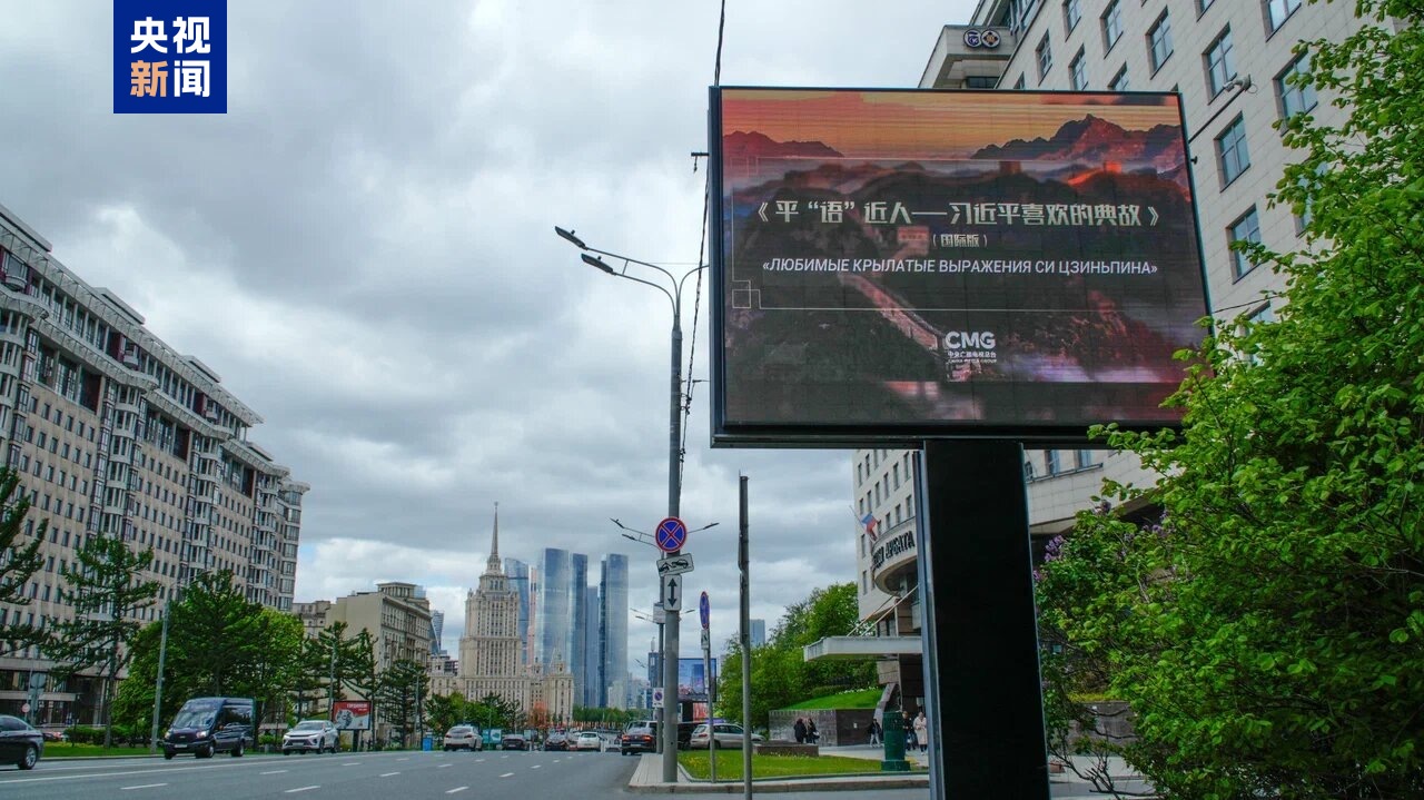 5月7日起,《平“語(yǔ)”近人——習(xí)近平喜歡的典故》(國(guó)際版)海報(bào)在莫斯科中央行政區(qū)的戶外大屏滾動(dòng)播放。俄羅斯各界人士對(duì)節(jié)目落地播出表示期待,認(rèn)為這將為俄羅斯民眾更深入領(lǐng)略習(xí)近平主席治國(guó)理政智慧,感知中國(guó)文化的博大精深打開(kāi)一扇思想之窗,為增進(jìn)俄中友誼、推動(dòng)雙方友好往來(lái)注入深厚持久的文化力量。