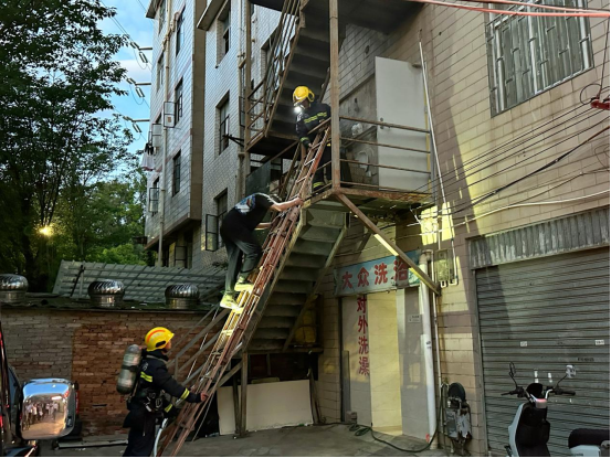 除了理論知識的講解,火災(zāi)模擬演練更是將活動推向了高潮?!拔?,您好!盤龍區(qū)上馬新村悅明賓館二樓發(fā)生了火災(zāi),有6人被困……”隨著模擬報警電話的響起,火災(zāi)模擬演練正式開始。二樓迅速濃煙滾滾,6名住戶被困其中。警報聲響起后,居民們在消防員的引導(dǎo)下,迅速用濕毛巾捂住口鼻,低姿穿過“濃煙區(qū)”,沿著安全通道有序撤離至空曠區(qū)域,最終成功“解救被困人員”。通過這次模擬演練,居民們親身體驗了火災(zāi)發(fā)生時的緊張氛圍,也更加熟悉了火災(zāi)逃生的正確方法和流程。
