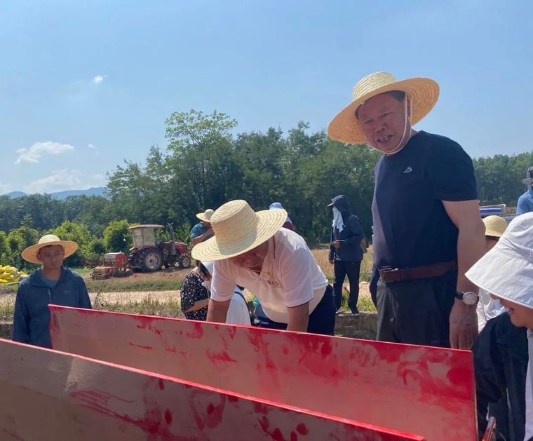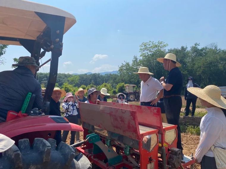 培訓(xùn)前,朱有勇院士一行深入勐捧鎮(zhèn)下中良村示范田,實(shí)地查看旱地優(yōu)質(zhì)稻種植情況并親自指導(dǎo)?,F(xiàn)場(chǎng)觀摩時(shí),機(jī)手講解播種機(jī)構(gòu)造與原理,并進(jìn)行種肥一體化推廣演示。他指出旱地優(yōu)質(zhì)稻播種需滿足“三干”條件,即“干土、干種、晴天”,只有這樣稻種才能扎根穩(wěn)固、出苗整齊。生動(dòng)的講解讓復(fù)雜的技術(shù)要點(diǎn)變得通俗易懂,學(xué)員們認(rèn)真聆聽(tīng)、仔細(xì)觀察并做好記錄,力求掌握播種的關(guān)鍵要領(lǐng)。