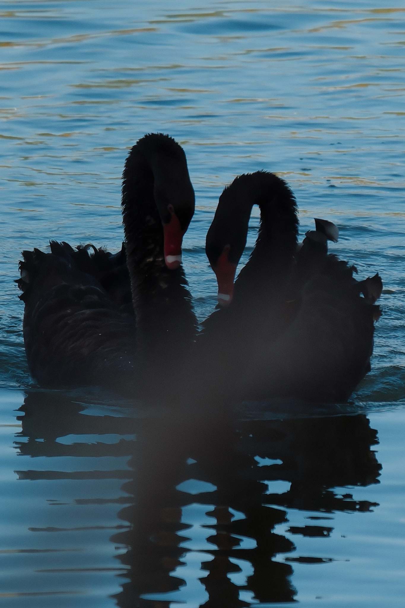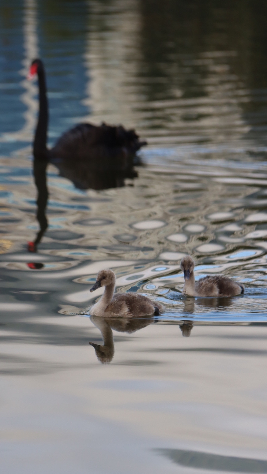 波光粼粼的湖面上,有的黑天鵝在曲頸梳羽,有的優(yōu)雅地游弋著,有的帶著寶寶出游覓食。