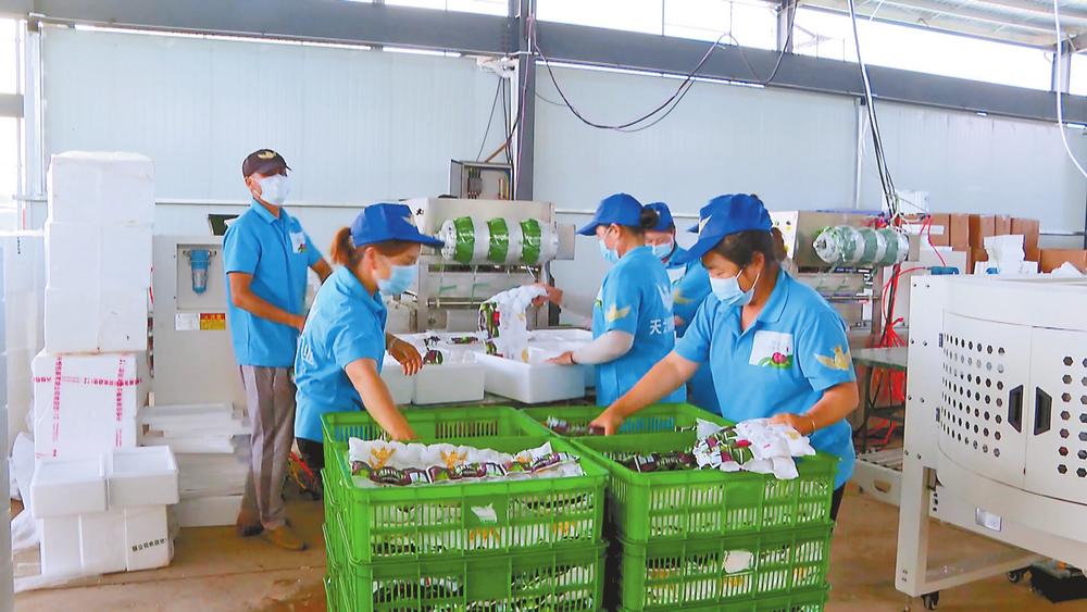 石屏華祥公司工人打包楊梅。