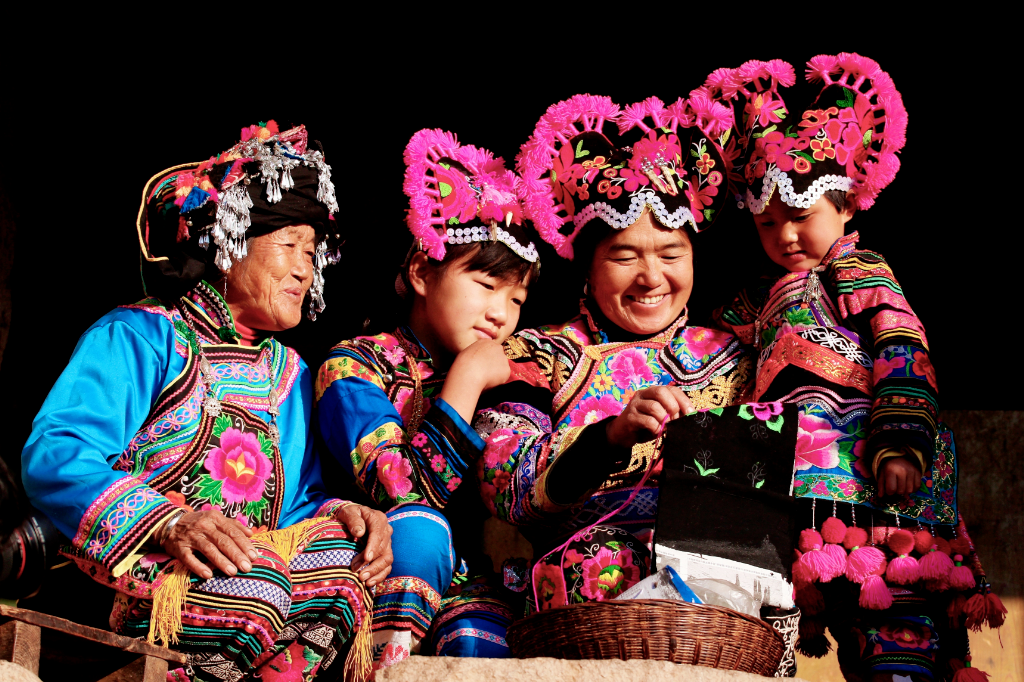 彝族兒女身著五彩斑斕的民族服飾