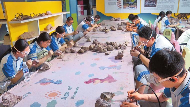 “恐龍谷有大量的化石,通過專業(yè)的科普講解,學(xué)生不僅可以了解到恐龍生存發(fā)展的歷史,還能了解到眾多的古生物知識。通過對恐龍化石修復(fù)等活動,讓學(xué)生的動手能力得到了鍛煉,激發(fā)了同學(xué)們的科學(xué)精神、探索精神,為未來的學(xué)習(xí)生活提供了很好的實踐基礎(chǔ)?!迸手ㄊ写蠛又袑W(xué)老師郭承武說。