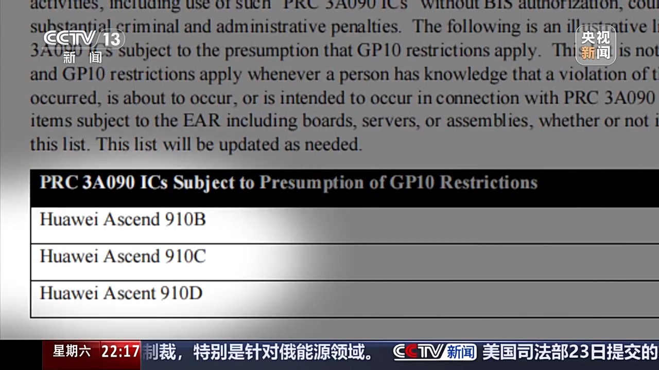 這里是華盛頓特區(qū)的美國商務(wù)部總部,十幾天前,其工業(yè)與安全局發(fā)布的關(guān)于AI芯片出口管制的指南,再次以霸凌和威脅的手段,意圖在全球市場,封殺中國的高端芯片。這份指南,直接點名華為“昇騰”AI芯片,聲稱在全球任何地方使用“昇騰”芯片,都將違反美國出口管制規(guī)定。從15日到22日,8天時間,中國商務(wù)部和外交部,已先后五次對這份所謂的指南,進(jìn)行了回應(yīng)。