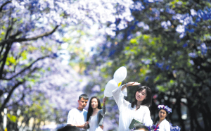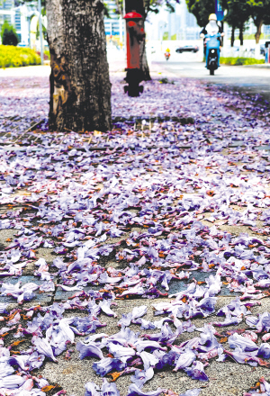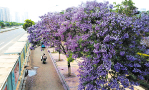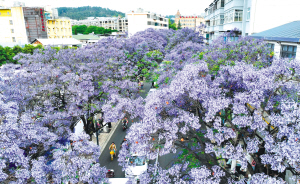 教場(chǎng)路因藍(lán)花楹已成為全國知名的賞花地。