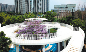 城市小游園里,一株藍(lán)花楹一座橋就是一幅畫。