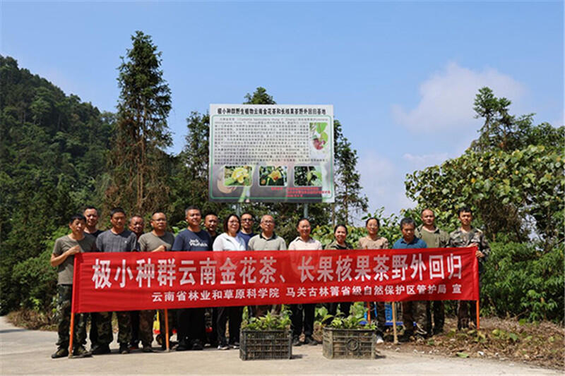 2024年,云南省啟動(dòng)云南金花茶等4種山茶科野生植物人工繁育和野外回歸項(xiàng)目,由云南省林業(yè)和草原科學(xué)院組織實(shí)施。省林科院通過與馬關(guān)古林箐省級(jí)保護(hù)區(qū)管護(hù)局合作,在全面調(diào)查并指導(dǎo)分布地做好野外種群保護(hù)的基礎(chǔ)上,開展了云南金花茶和長果核果茶生物學(xué)特性、人工擴(kuò)繁與野外回歸技術(shù)研究,繁育云南金花茶、長果核果茶苗木3000余株,將分批在其原生分布地馬關(guān)、河口進(jìn)行野外回歸。