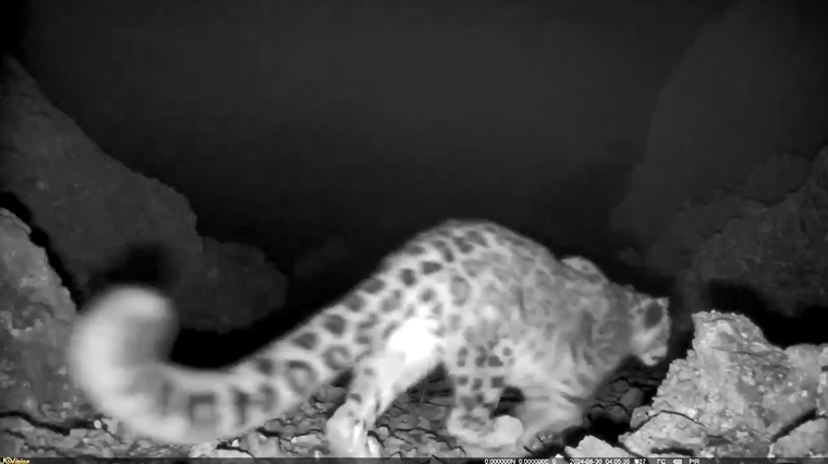 近日,記者從山水自然保護(hù)中心獲悉,位于云南迪慶的螞蟻森林巴美保護(hù)地在生物多樣性監(jiān)測的紅外相機(jī)中,首次記錄到了“雪山之王”雪豹與“雪山精靈”滇金絲猴同域分布的影像。視頻中,雪豹于凌晨4時(shí)左右從紅外相機(jī)前走過,雪豹的斑點(diǎn)花紋明亮清晰,長長的尾巴快速掃過鏡頭,帶著“雪山之王”的威猛巡視著這片滇金絲猴的棲息地。