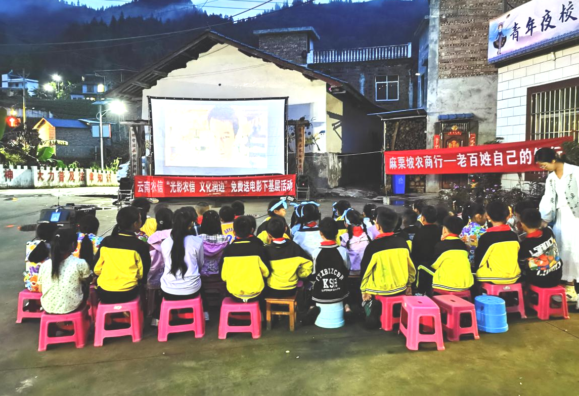 在云南省委宣傳部和云南省電影局的指導支持下,“光影農(nóng)信·文化潤邊”送電影下基層活動計劃依托云南農(nóng)信長期深耕邊境縣(市)的網(wǎng)點、人員優(yōu)勢,利用當?shù)?50余個農(nóng)信鄉(xiāng)鎮(zhèn)網(wǎng)點開展千場電影放映,將《一點就到家》《我本是高山》《云下的日子》《我和我的父輩》《流浪地球》等涵蓋愛國主義、民族團結(jié)、鄉(xiāng)村振興等主題的優(yōu)質(zhì)影片送進邊境村寨、國門口岸、學校社區(qū),用光影點亮邊境鄉(xiāng)村的夜晚,把優(yōu)質(zhì)的文化服務送到群眾身邊,有效豐富當?shù)厝罕姾娃r(nóng)信基層職工精神文化生活。