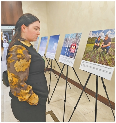 在2025中國—中亞媒體合作論壇上,外方嘉賓正在認真觀看中國—中亞合作圖片。 |