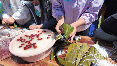 在湖南張家界黃龍洞景區(qū)生態(tài)廣場(chǎng),60多名來自印度尼西亞的游客興致勃勃地參加了“端午佳節(jié)·‘粽’情相約”民俗體驗(yàn)活動(dòng)。在景區(qū)工作人員指導(dǎo)下,印尼游客從選粽葉、折粽葉、填充糯米到捆扎,學(xué)得有模有樣。印度尼西亞游客魏琳開心地告訴記者,“在這邊非常高興可以體會(huì)到自己做粽子,學(xué)習(xí)怎么捆,怎么包扎的感覺。包粽子這個(gè)活動(dòng),為我的旅游行程增添歡樂和溫暖?!?/p>