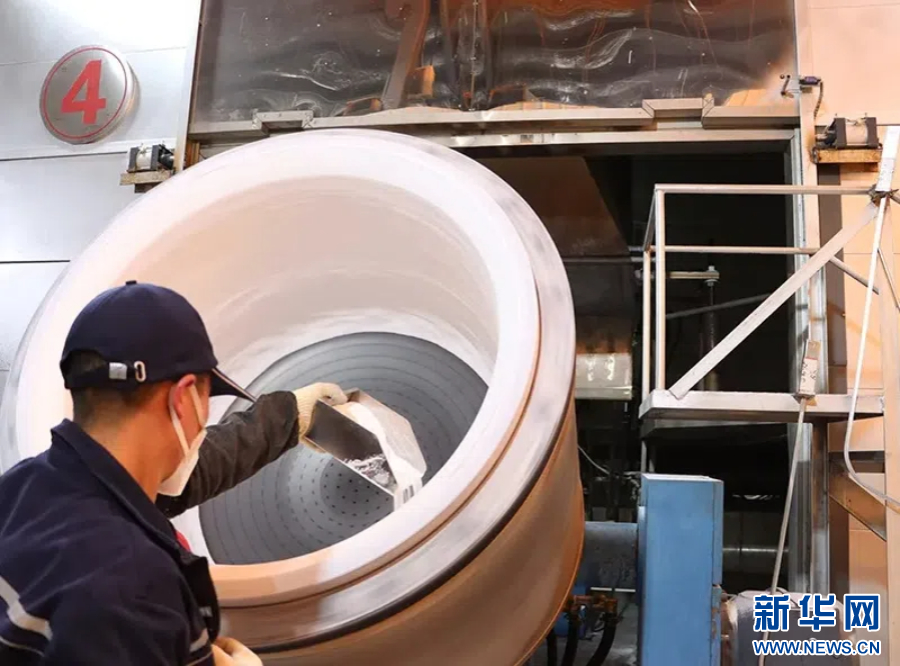 在紅河邦德新材料有限公司的生產(chǎn)車間,一桶桶高純度石英砂原料加入模具,經(jīng)過電弧熔制、水噴研磨、高壓沖洗等多道工序,變?yōu)閱尉Ч枭a(chǎn)中重要的耗材工具——石英坩堝。
