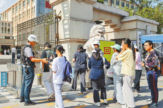 考生在昆明市第一中學(xué)考場(chǎng)踩點(diǎn)。