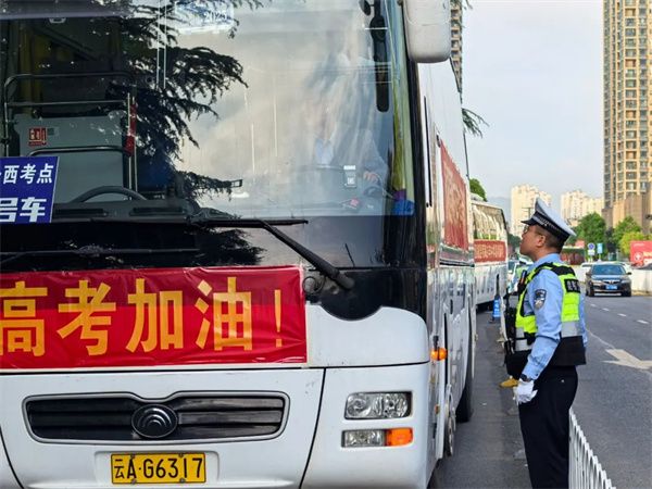 為確保高考順利進(jìn)行,昆明公安執(zhí)勤警力一大早就守候在各個(gè)考點(diǎn),確保考點(diǎn)及周邊交通、治安秩序平穩(wěn)有序。警方根據(jù)實(shí)際路況,安排警車護(hù)航考點(diǎn)接送車輛,同時(shí),加強(qiáng)考點(diǎn)周邊巡邏防控和交通管制,及時(shí)查處交通違法行為,采取區(qū)域禁鳴、路段限速、車輛限行等措施,確保高考期間道路通暢、秩序良好。
