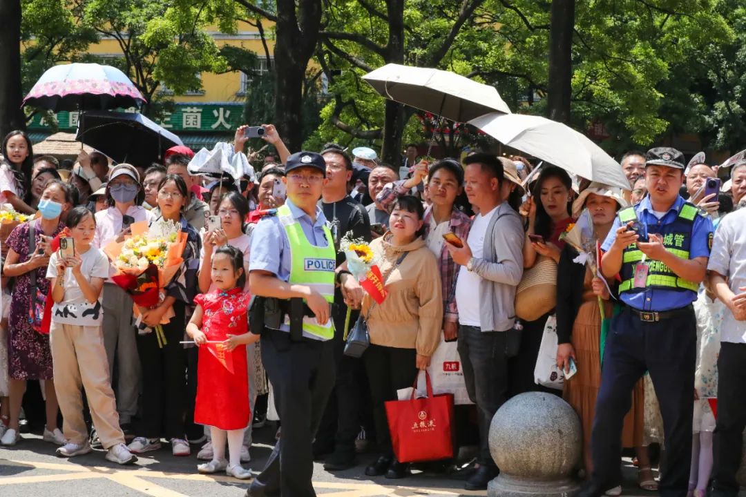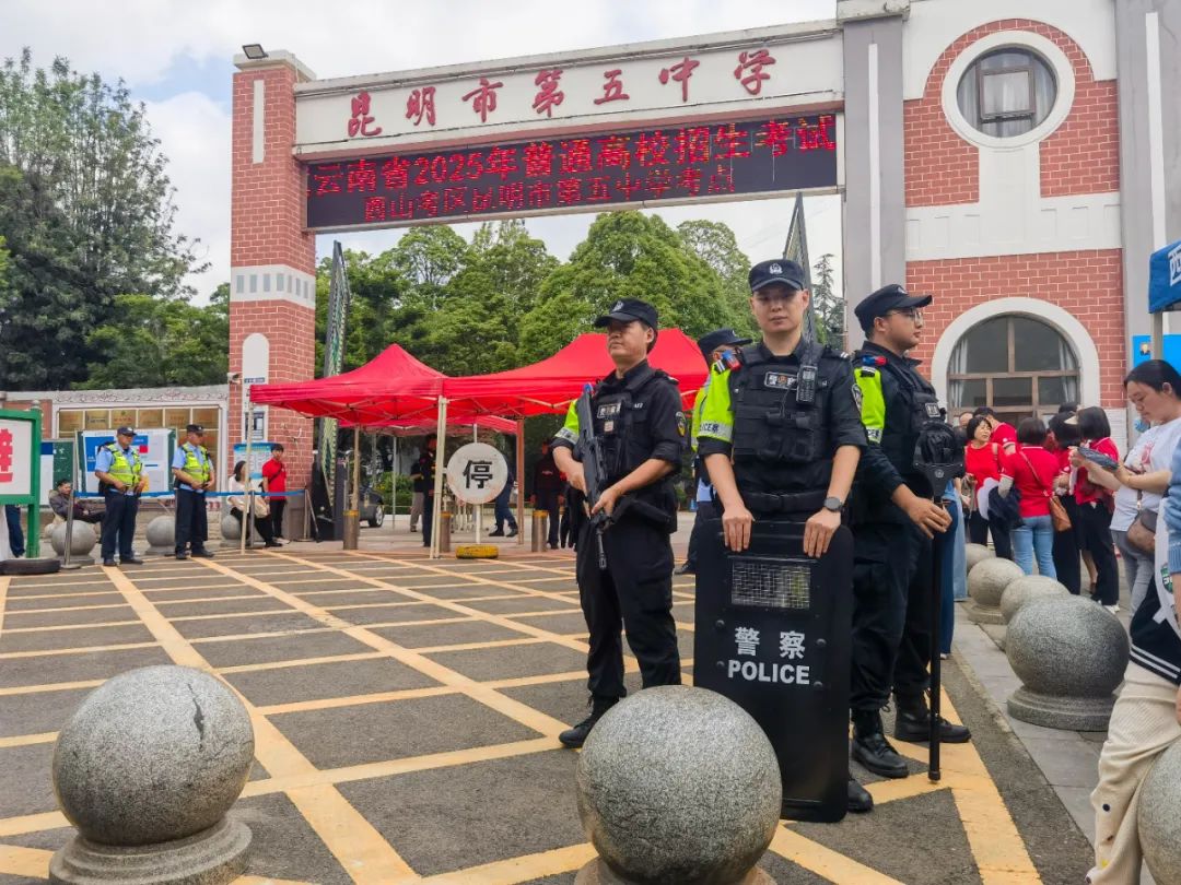 6月7日7時50分,在昆五中考場,有一名考生行動不便,特巡警大隊騎巡組見狀,立即上前幫助,將其送至考場內;待考試結束后,又將該考生從考場接出。