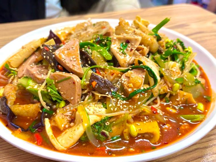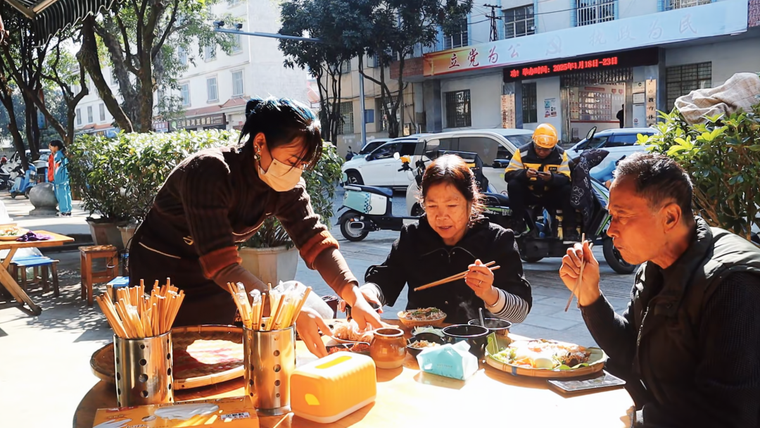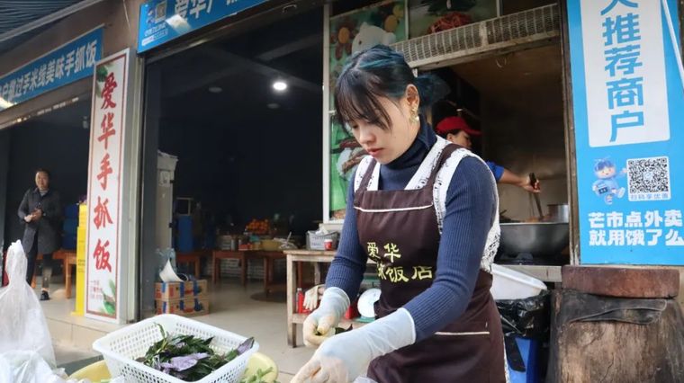 早上8點(diǎn),餐飲店老板采購(gòu)?fù)晷迈r食材后,瑪雷埃紐和同事們便開(kāi)始了忙碌的一天。備菜、烤肉、蒸飯、招待來(lái)自中國(guó)各地的食客。