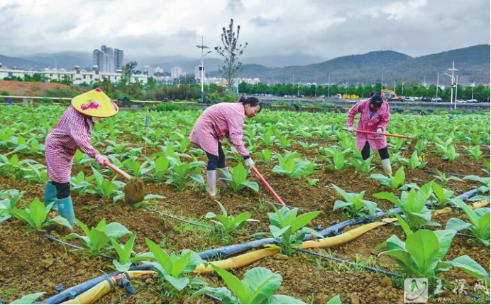 梅營(yíng)社區(qū)辦公樓后面,一片500畝的烤煙在雨水的滋潤(rùn)下長(zhǎng)勢(shì)喜人。來(lái)自梅營(yíng)社區(qū)11組的李素琴與30余名工友正忙著培土、除草?!艾F(xiàn)在工資月結(jié),每天80元到100元,通過(guò)村辦公司派活,不用擔(dān)心工資被拖欠?!崩钏厍俑吲d地說(shuō)。她家流轉(zhuǎn)出去2畝地,年租金3600元,加上務(wù)工收入,日子越過(guò)越紅火。
