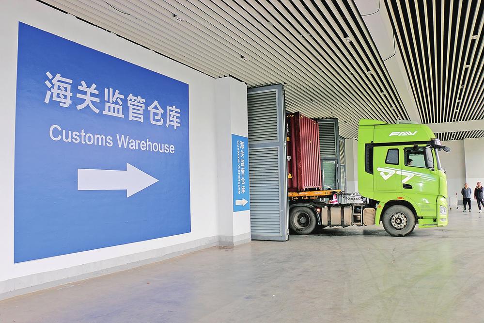 運(yùn)輸展品車輛進(jìn)入位于昆明國際會展中心的海關(guān)監(jiān)管倉庫 李文君 攝