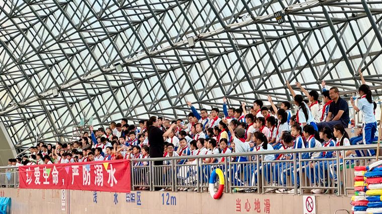 理論講解環(huán)節(jié)后,楊家中心學(xué)校的30名“游泳小將”依次展示蛙泳、自由泳、仰泳、蝶泳4種標(biāo)準(zhǔn)泳姿,動作利落、規(guī)范,盡顯專業(yè)功底。接力賽環(huán)節(jié),小將們配合默契,如靈動的魚兒穿梭泳池,用速度與協(xié)作,為現(xiàn)場帶來活力滿滿的水上競技展示 ,將活動氛圍推向新高度,也讓同學(xué)們感受到規(guī)范游泳技能的魅力。