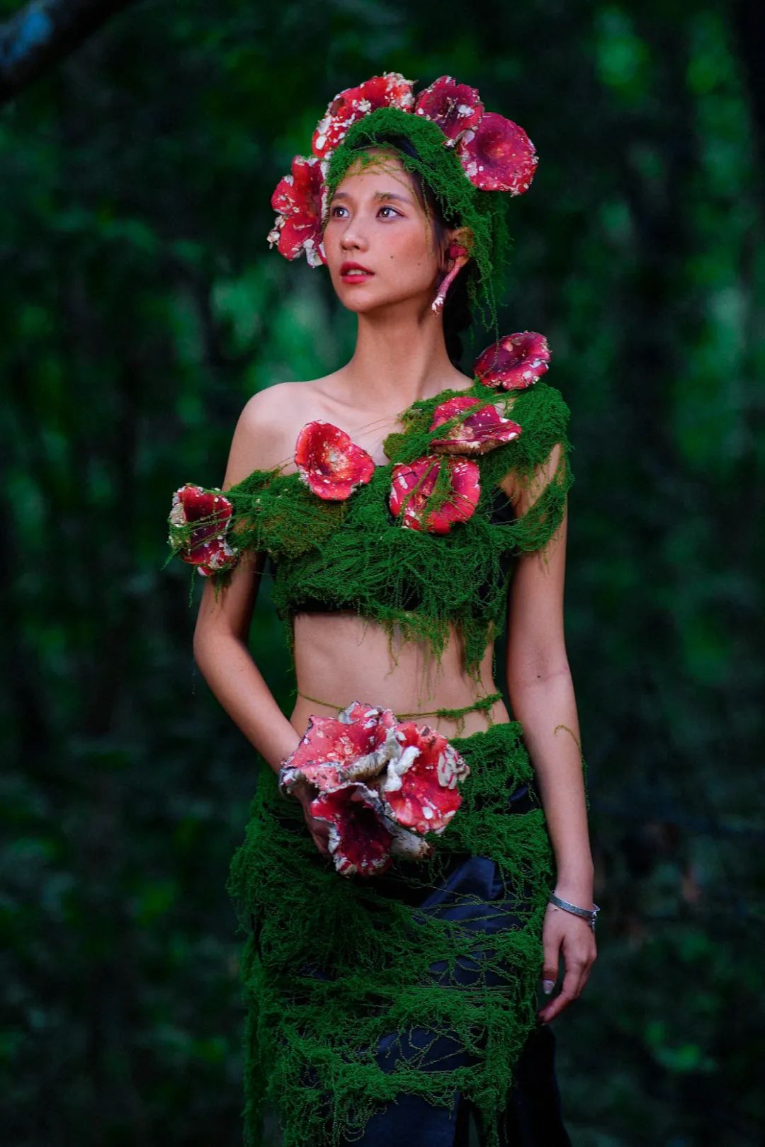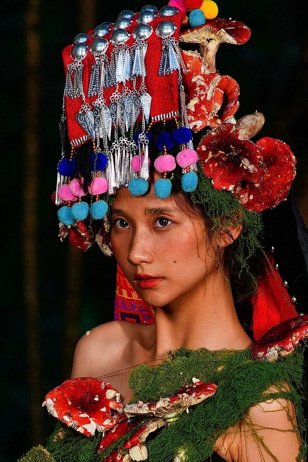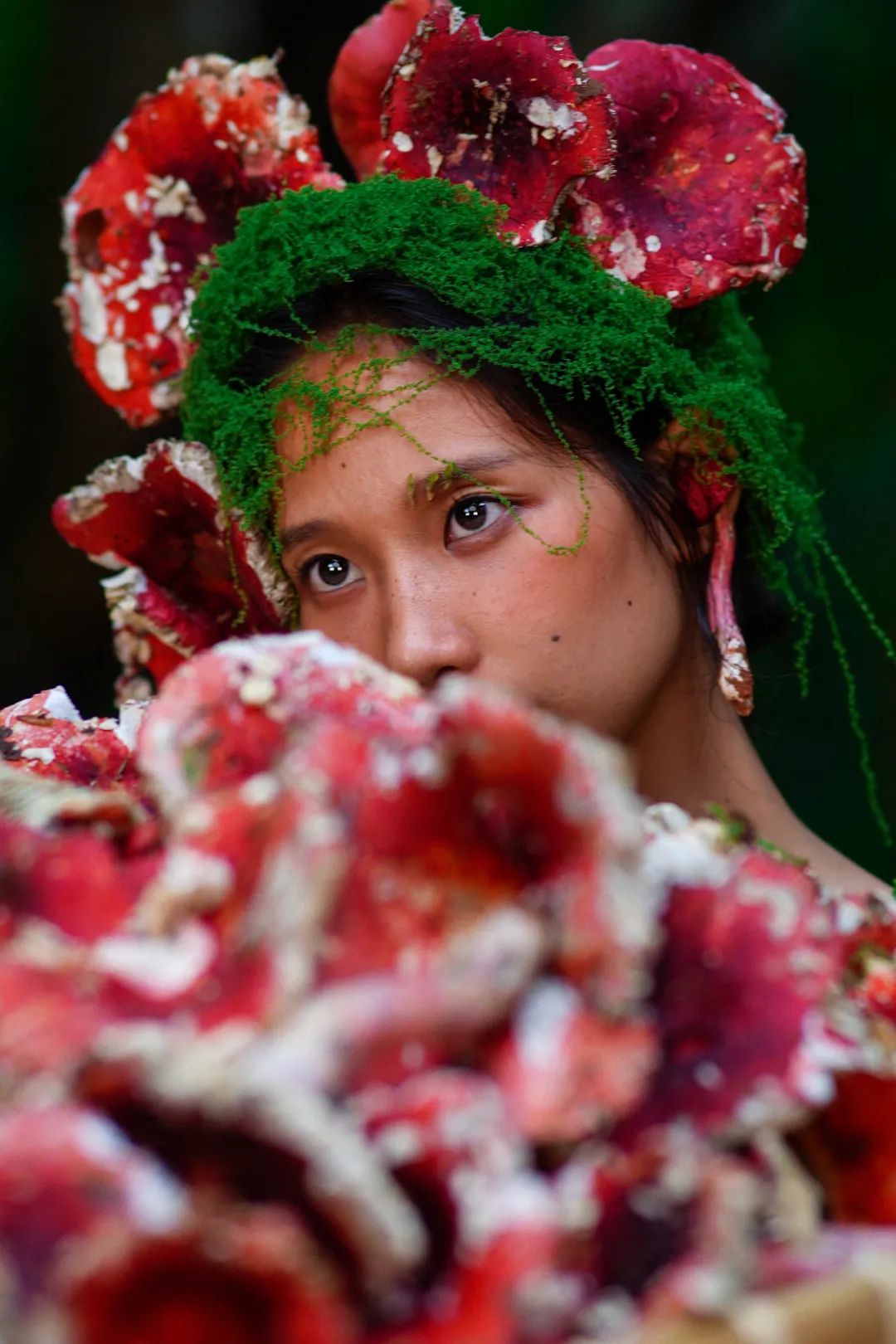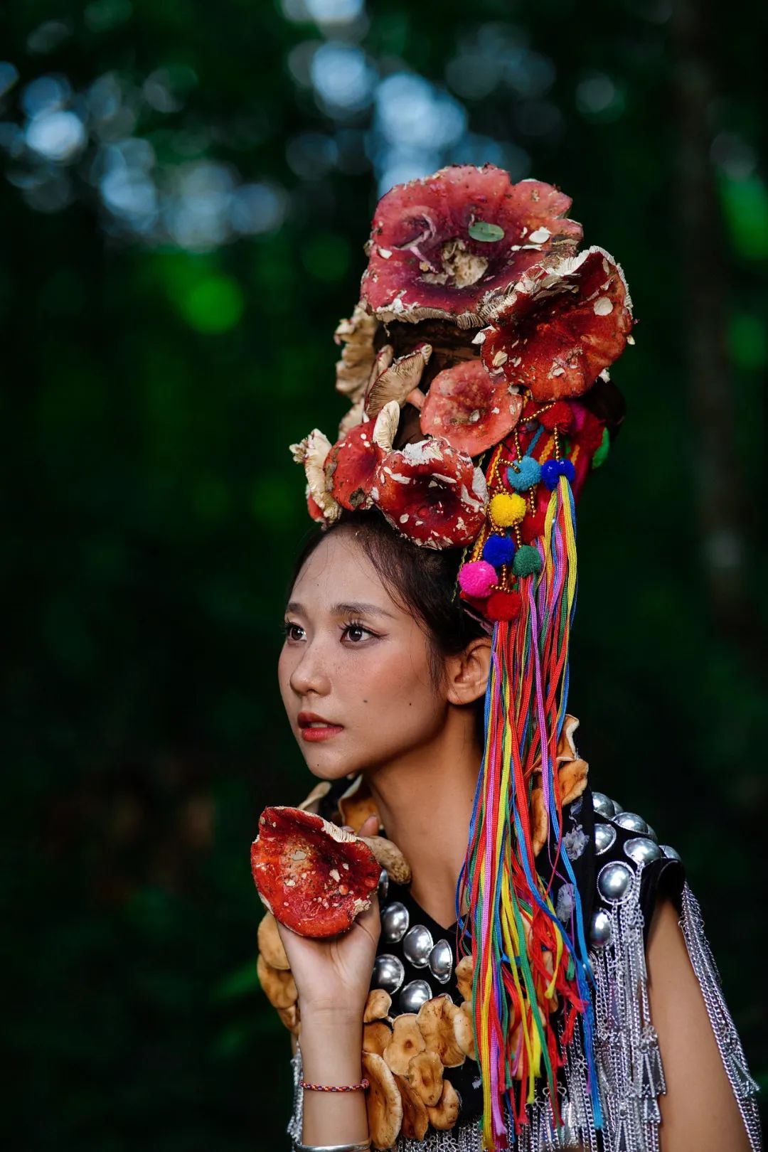 當(dāng)姑娘的發(fā)間戴上鮮艷的大紅菌