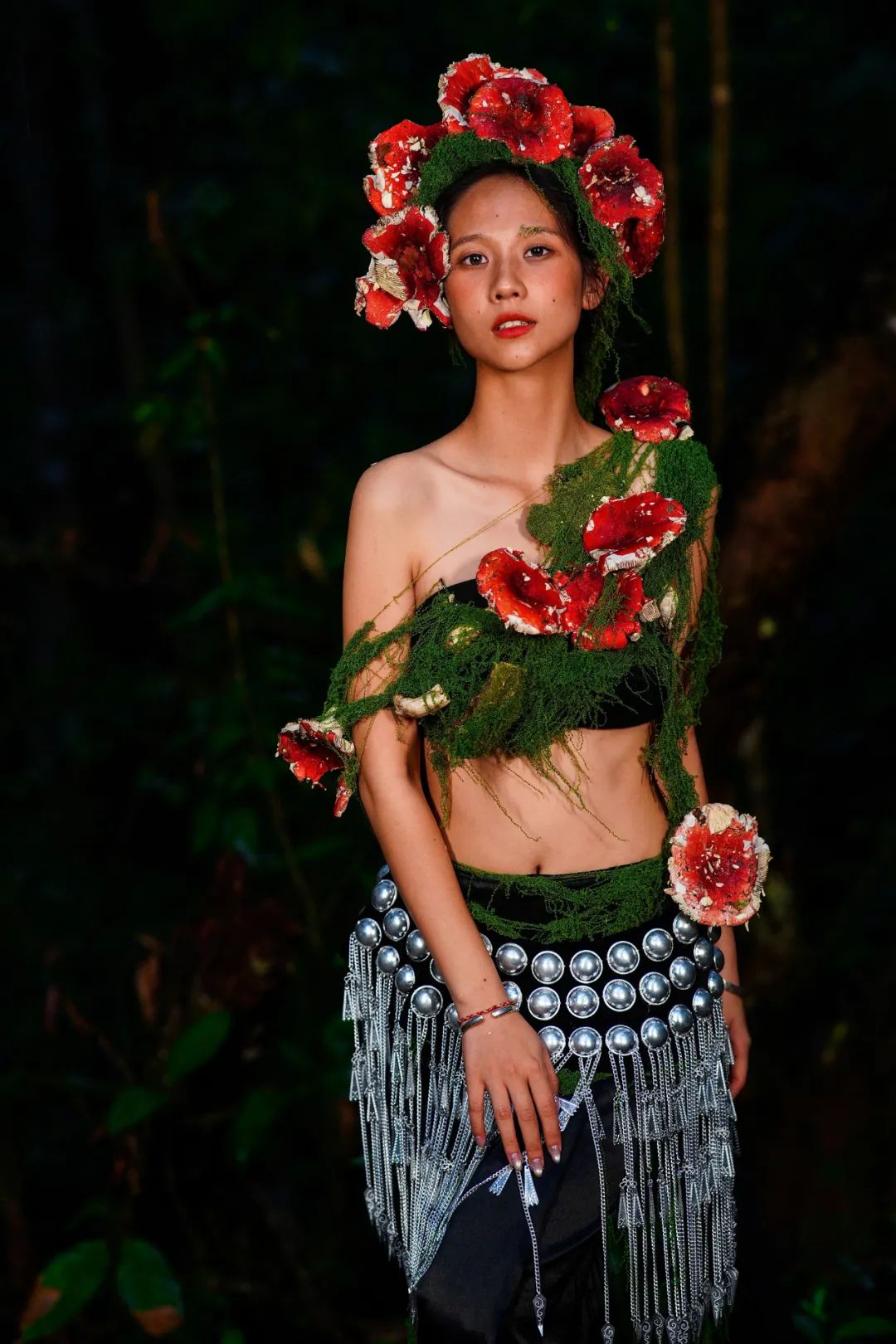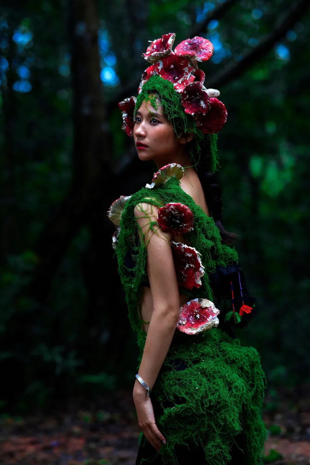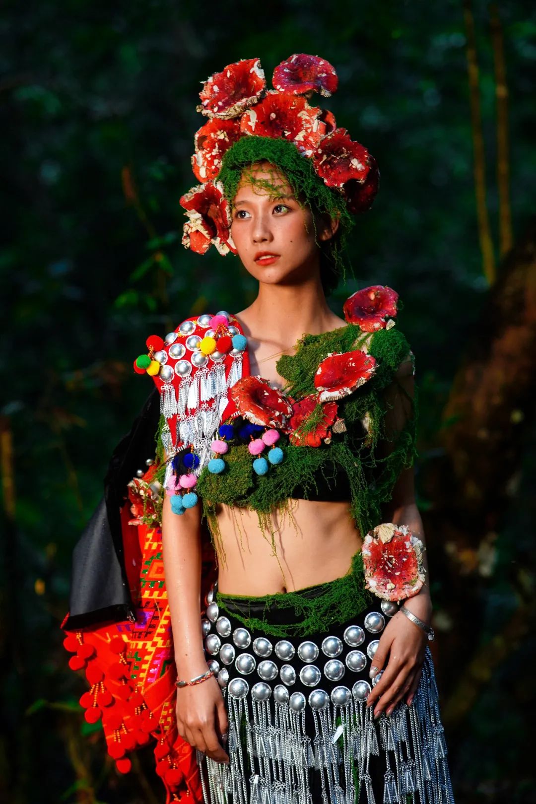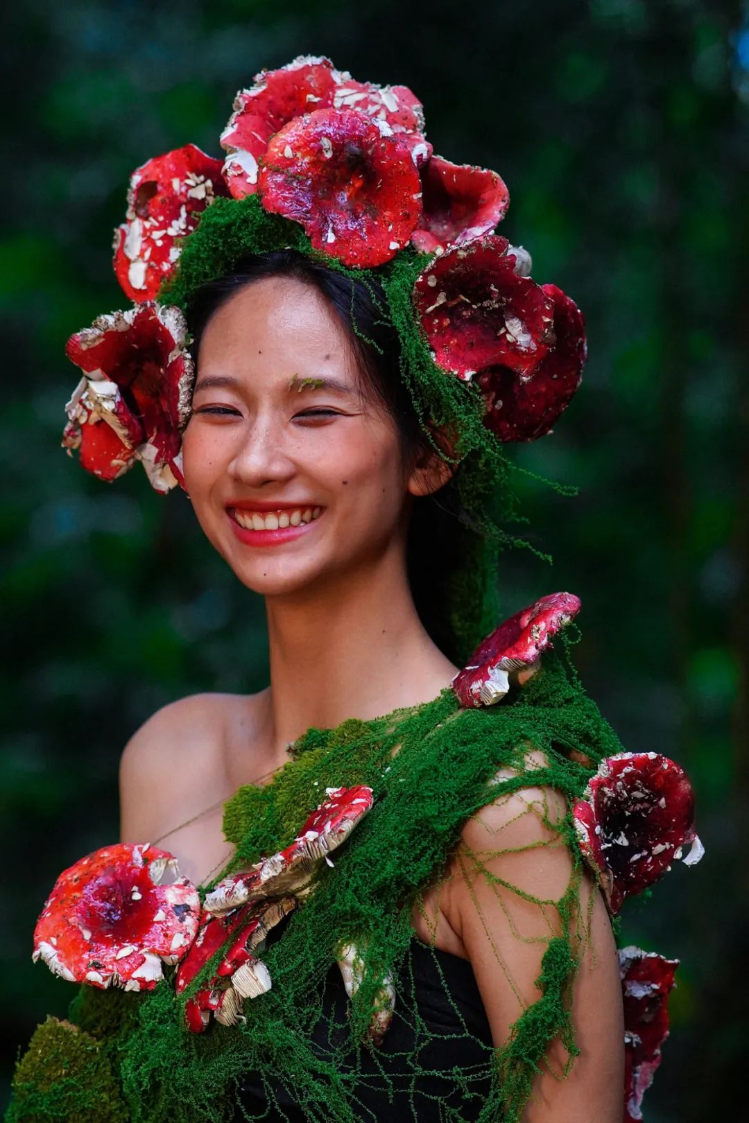 當(dāng)姑娘的發(fā)間戴上鮮艷的大紅菌