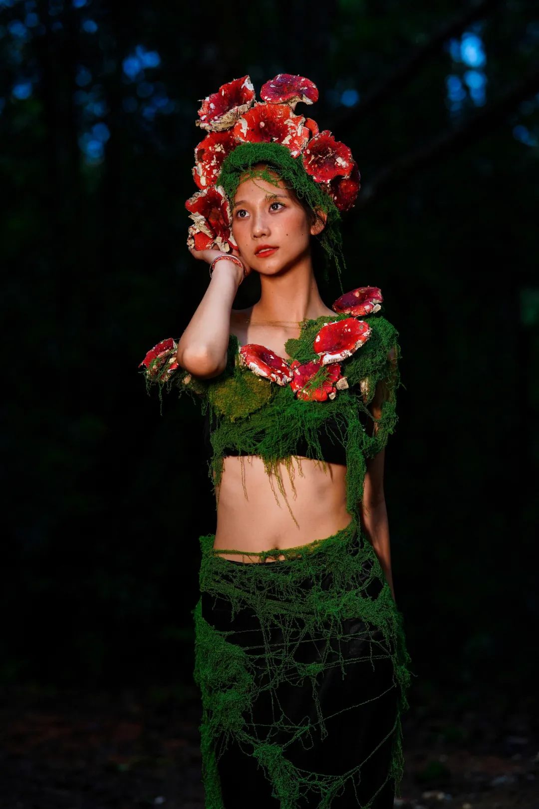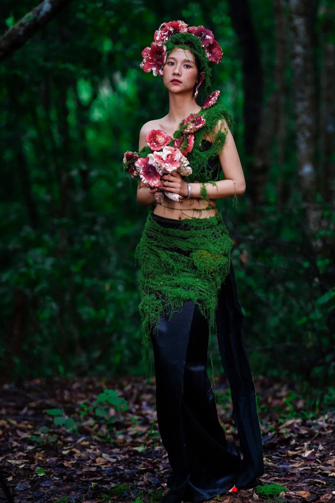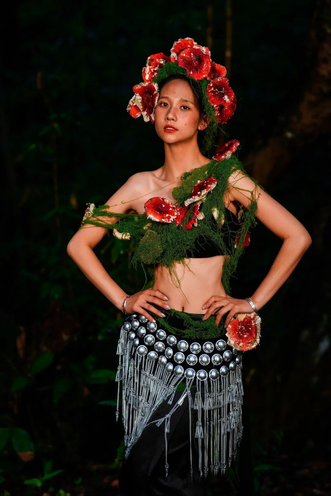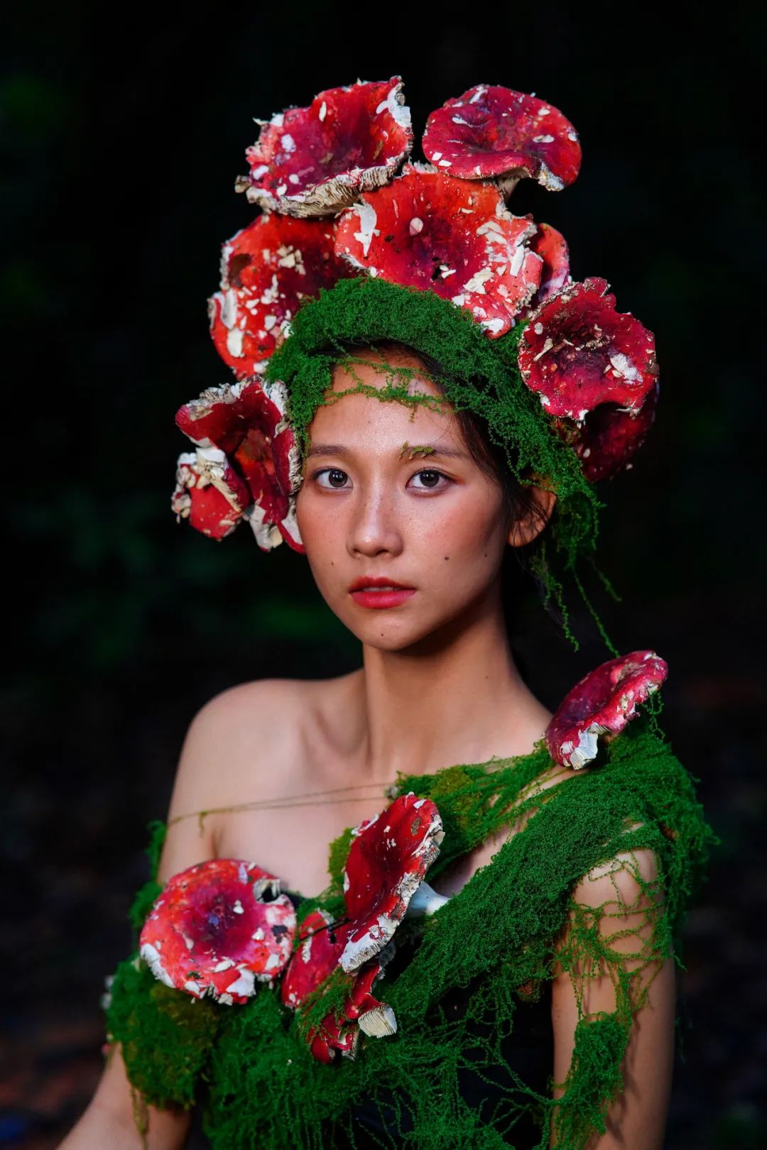 當(dāng)姑娘的發(fā)間戴上鮮艷的大紅菌