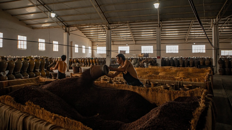 云南得天獨(dú)厚的生態(tài)環(huán)境與優(yōu)質(zhì)原料是“云知夢(mèng)”口感獨(dú)特的關(guān)鍵。酒品精選當(dāng)?shù)丶t高粱,采用天然鍶泉水浸泡蒸煮,引入單一菌種糖化,保留高粱最純粹、天然的香氣。經(jīng)過(guò)“泡糧”“蒸煮”“下曲”完成糖化的高粱被裝入特制土壇,歷經(jīng)840小時(shí)自然發(fā)酵后送上甑蒸餾,得到一滴滴純粹的高粱酒液。新酒仍需靜置于土壇中,經(jīng)歷兩年以上的窖藏,使酒體柔和,風(fēng)味沉穩(wěn),完成最后一輪升華——去雜、增香、養(yǎng)性。