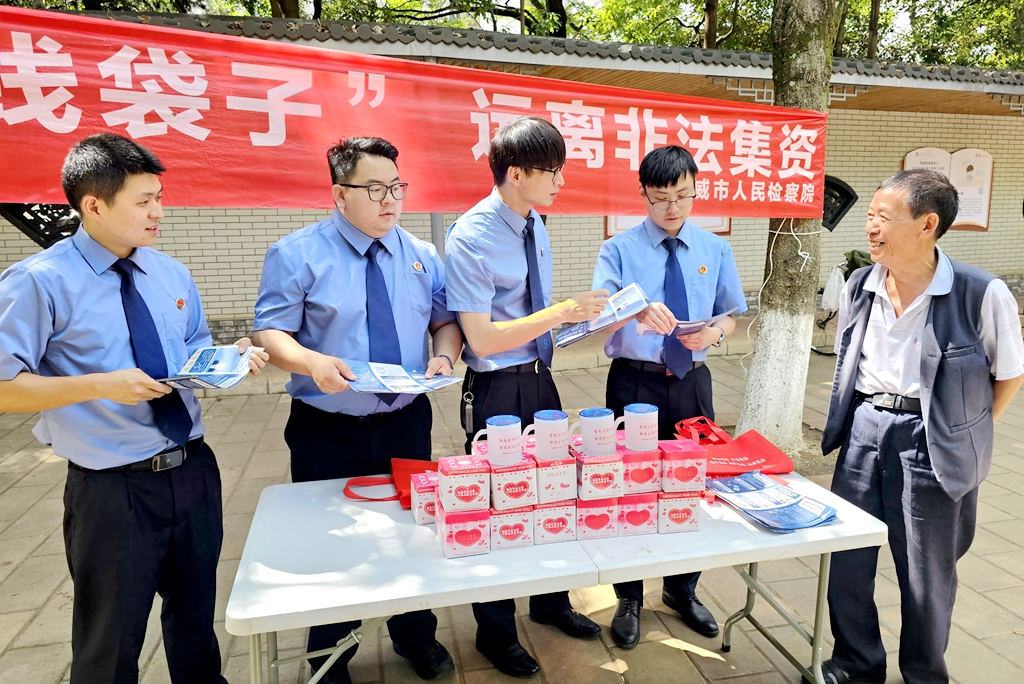 為進(jìn)一步提升社會(huì)公眾防范非法集資的意識(shí)和能力,從源頭上遏制非法集資詐騙犯罪高發(fā)態(tài)勢(shì),切實(shí)守護(hù)好人民群眾的“錢(qián)袋子”。2025年6月12日,宣威市人民檢察院干警走進(jìn)人流量密集的公園開(kāi)展防范非法集資宣傳活動(dòng)。