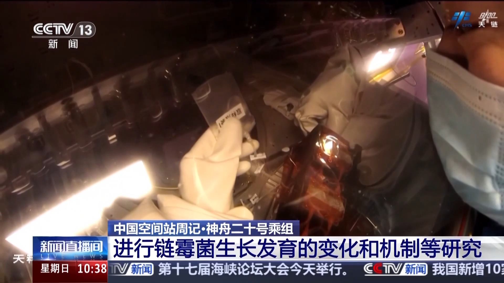 在生物技術(shù)實驗柜內(nèi),“空間微重力對微生物的效應機制研究”持續(xù)推進,在空間微重力環(huán)境下,航天員進行了鏈霉菌的生長、發(fā)育分化、生物活性物質(zhì)合成、種群傳代演替的變化和機制等研究。利用科學手套箱,航天員完成了液體培養(yǎng)樣品采集工作,并將其冷凍保存,等待下行。在空間微重力物理領(lǐng)域,乘組完成了燃燒柜實驗插件采樣蓋更換,無容器柜清潔維護等工作。