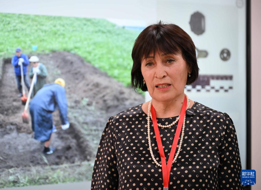 6月3日,哈薩克斯坦伊塞克國(guó)家歷史文化博物館館長(zhǎng)古麗米拉接受新華社記者采訪。新華社記者 李任滋 攝