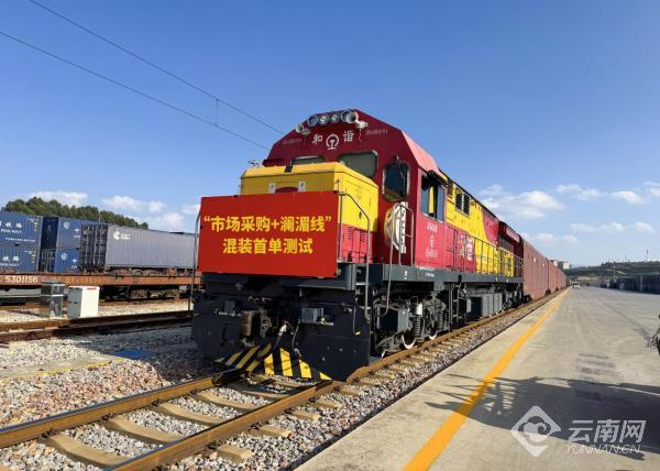 6月14日,云南省首單“市場采購貿(mào)易+瀾湄線”混裝班列從昆明王家營西集裝箱中心站駛出,順利將一批貨值38.4萬元的五金及建材產(chǎn)品經(jīng)中老鐵路瀾湄線發(fā)往緬甸大其力。
