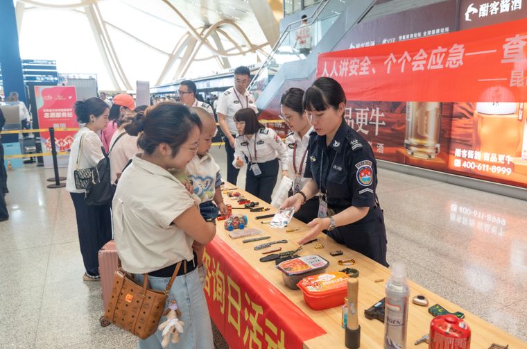 在航站樓的活動現(xiàn)場,昆明機(jī)場、東航云南公司、祥鵬航空公司、川航云南分公司、昆明航空公司、蘇南瑞麗航空公司等單位在航站樓布置了多個(gè)咨詢展臺,積極融合線上、線下渠道,通過主題展板、有獎答題、知識圖冊和安全宣傳片等途徑,集中宣傳民航安全生產(chǎn)方針政策、法律法規(guī)、安全文化、安全乘機(jī)須知、常見的旅客不安全行為和后果、生命通道布局標(biāo)識和避險(xiǎn)逃生技能等,回答公眾關(guān)心關(guān)注的民航安全運(yùn)行問題。