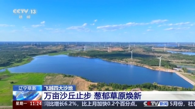 近年來,彰武縣以灌木固沙為主、人工沙障為輔,栽種耐寒、耐旱、耐瘠薄的樹種,逐漸讓荒蕪沙地蛻變?yōu)槭[郁草原,并形成了54萬畝山水林田湖草沙生態(tài)治理區(qū)。不遠處的德力格爾草原,湖泊相連、風景如畫,每年吸引20多萬游客,也讓這片曾經(jīng)黃沙漫天的不毛之地,綻放出新的活力。