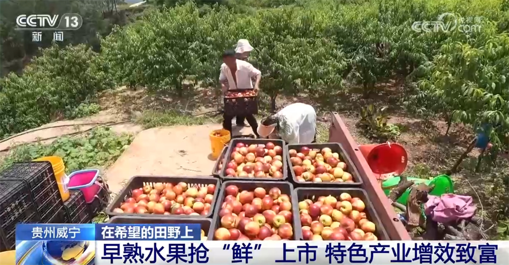 央視網(wǎng)消息:在貴州省畢節(jié)市威寧縣,多地種植的車厘子和油桃迎來豐收季。當?shù)爻浞掷脧姽庹铡円箿夭畲蟮臍夂騼?yōu)勢,大力發(fā)展早熟特色水果產(chǎn)業(yè),錯峰上市銷售,促進農(nóng)戶增收。