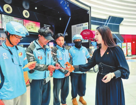 西山區(qū)怡心橋社區(qū)為外賣小哥贈(zèng)送愛(ài)心觀影券。云南日?qǐng)?bào)記者 熊明 攝