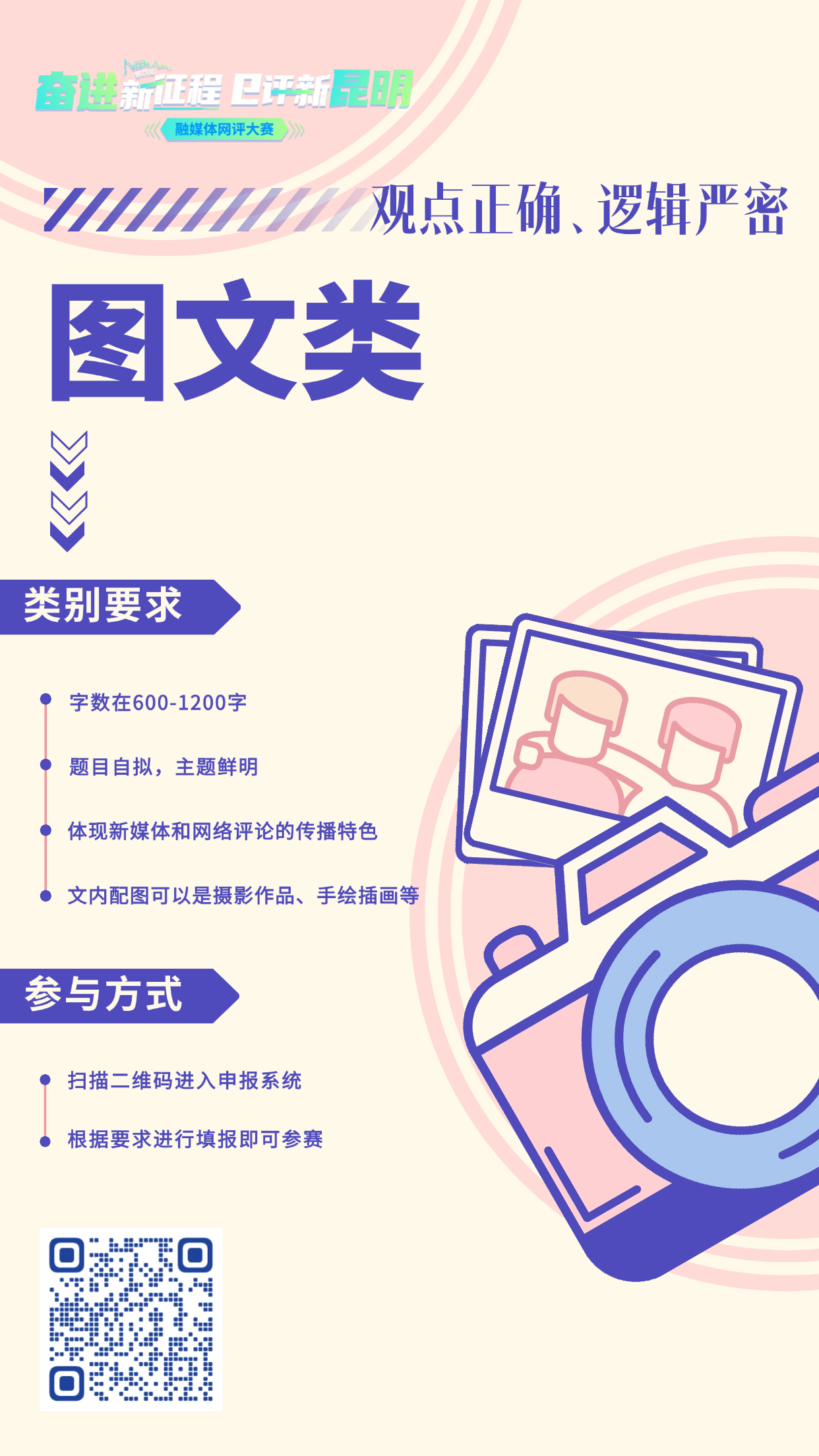 本屆大賽以“‘新’火燎原——解碼春城高質(zhì)量發(fā)展的創(chuàng)新密碼”為主題,聚焦新質(zhì)生產(chǎn)力、“六個春城”建設(shè)等核心議題,誠邀各界評論愛好者以圖文、H5、音視頻、動畫漫畫等多元形式,展現(xiàn)昆明高質(zhì)量發(fā)展的生動實踐與顯著成效。作品形式涵蓋圖文(600-1200字)、H5/海報(≤10屏)、音視頻(≤3分鐘)、動畫漫畫(無時長限制),鼓勵跨界融合、創(chuàng)新表達(dá)。
