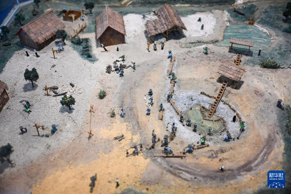這是3月12日在馬來西亞霹靂州近打錫礦(砂泵)博物館拍攝的采錫造景。新華社記者 程一恒 攝