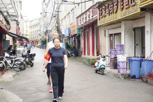 “紅袖標”志愿者馬蓮梅在日常巡邏。 盤龍區(qū)融媒體中心供圖