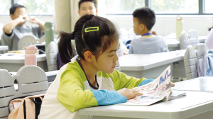 托管班的孩子認真閱讀繪本。 記者蔣曄攝