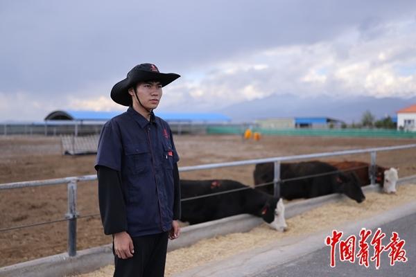 9月10日,新疆博爾塔拉蒙古自治州博樂市,新疆天萊農(nóng)牧集團(tuán)股份有限公司養(yǎng)殖場,20歲的撇依力·葉爾加義在牛欄前。他是伊犁哈薩克自治州新源縣人,在伊犁職業(yè)技術(shù)學(xué)院畜牧獸醫(yī)專業(yè)就讀,明年即將畢業(yè)。通過校企合作政策,加上自身的專業(yè)興趣,他來到該公司實習(xí),他認(rèn)為這里的工作環(huán)境很適合自己,未來打算留下。中青報·中青網(wǎng)記者 曲俊燕/攝
