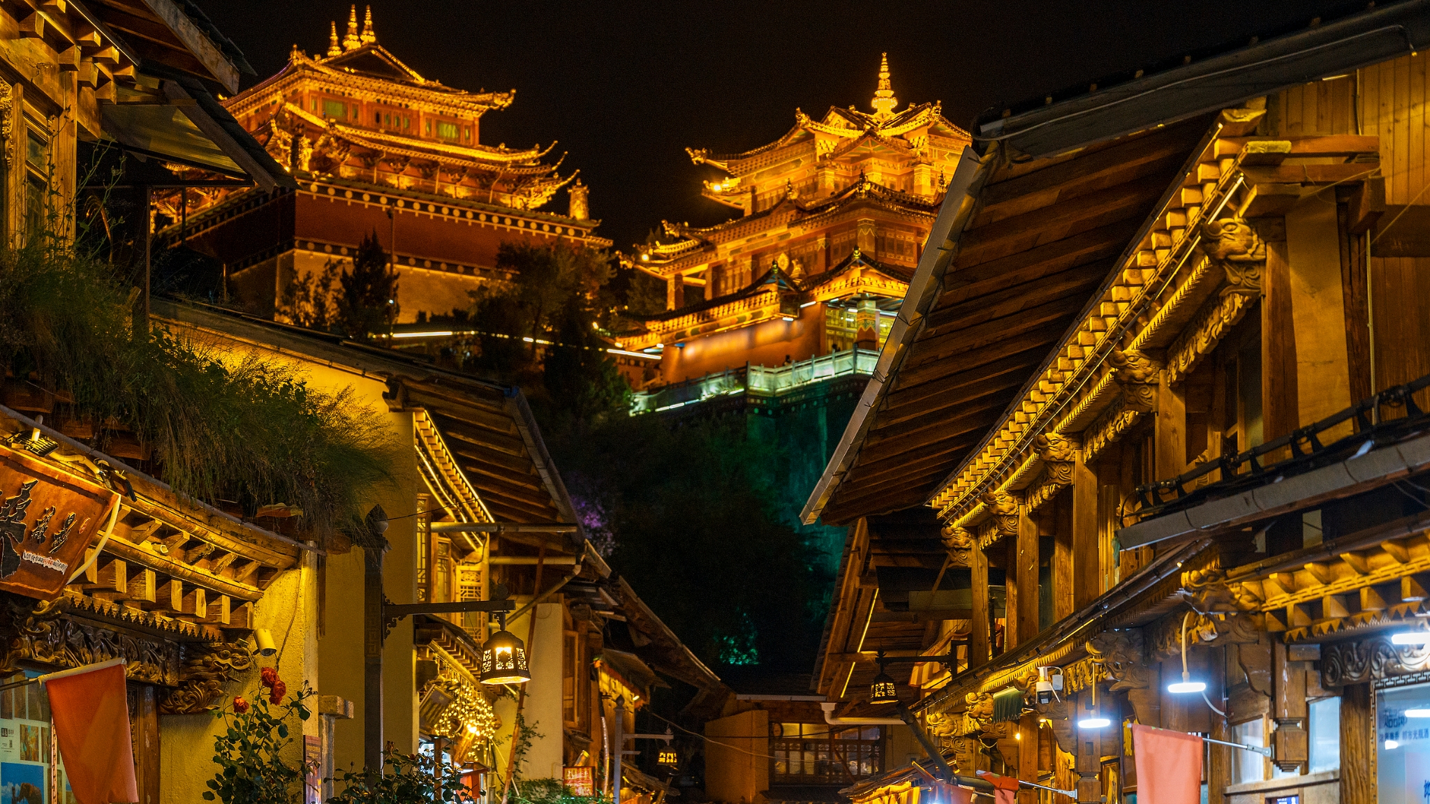 當(dāng)最后一縷夕陽(yáng)沉入雪山之巔,香格里拉的夜在飛舞的經(jīng)幡與古城的燈火中蘇醒。多元民族風(fēng)情夜市、非遺體驗(yàn)館與融合各民族特色的美食街區(qū),正編織著“雪山明珠”的夜間經(jīng)濟(jì)新圖景。