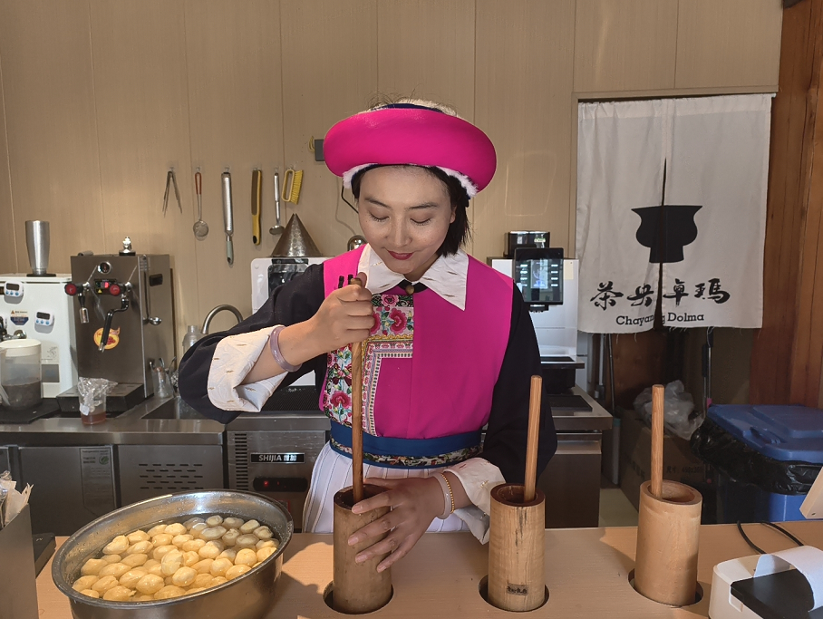 茶館里制作藏式奶茶。記者 彭少杰 攝