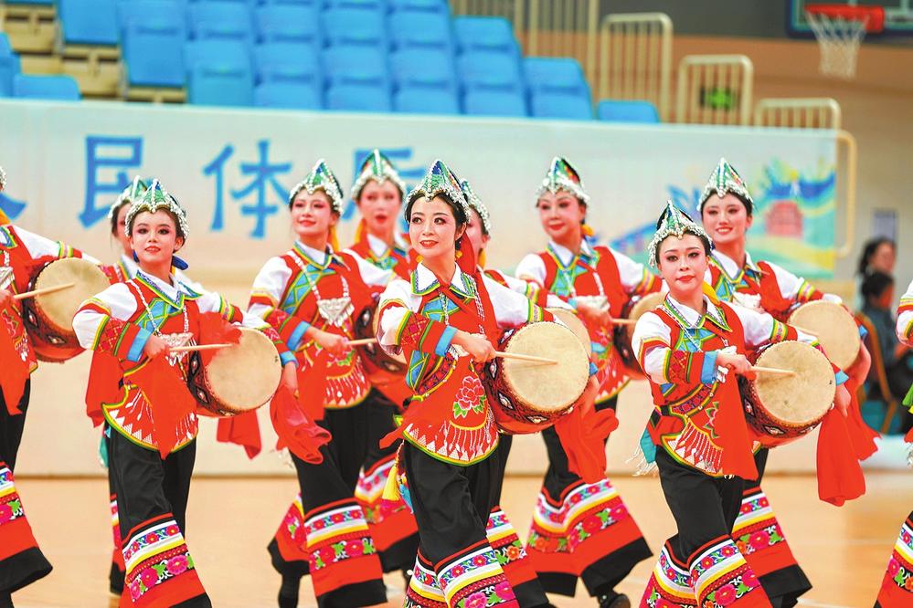 射弩、陀螺等多種形式的民族體育項目,不僅是云南各民族源遠流長的強身健體方式,也凝聚著中華民族的智慧結(jié)晶、文化特質(zhì)和情感認同,具有深厚的群眾基礎(chǔ),是中華優(yōu)秀傳統(tǒng)文化的重要組成部分。民族健身操作為規(guī)定項目,更成為全省各州市展示民族文化的絢麗舞臺。