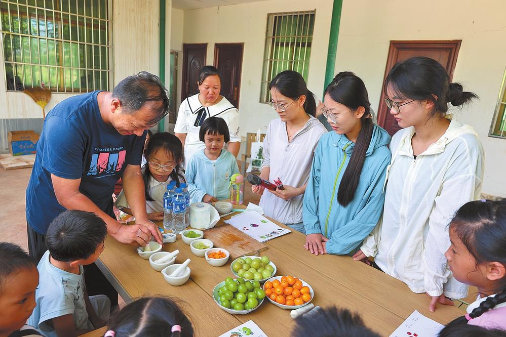 孩子們沉浸式體驗,了解植物特性。 記者陳云芬 攝