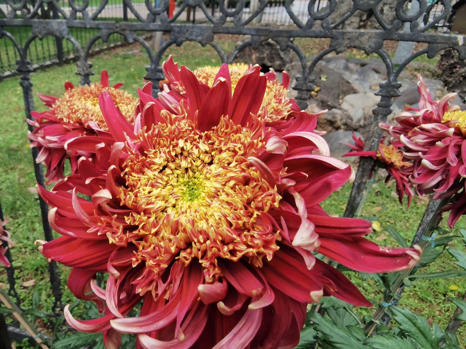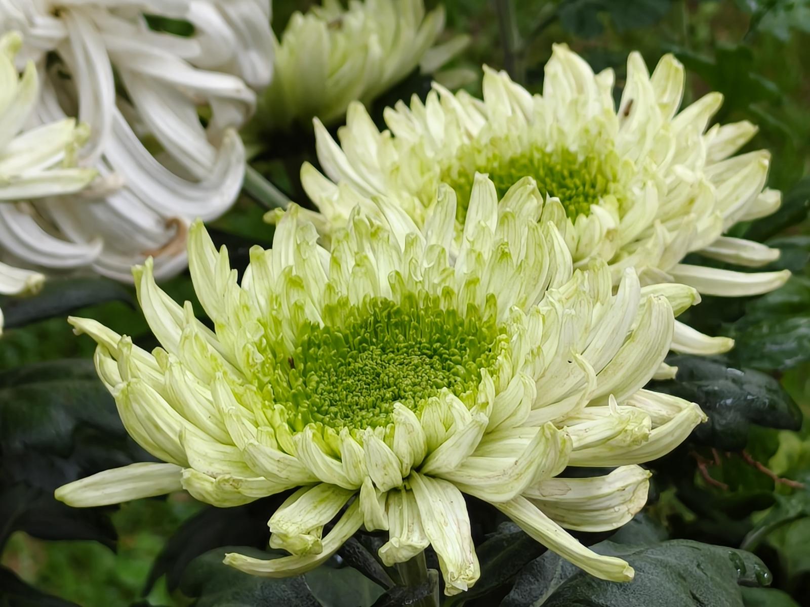 在近華浦區(qū)域的圓形睡蓮池周邊,將展出8個由公園職工精心綁扎而成的菊花立體造型柱,環(huán)繞水景,形成水映花姿、花增水韻的景觀。近華浦主路及支路草坪區(qū)域,設(shè)置系列展架,陳列包括球型、管狀、飛舞型、絲狀型等形態(tài)各異的菊花精品,共計(jì)300多個品種,其中,綠萍、綠沙等稀有綠色菊品種驚艷亮相。