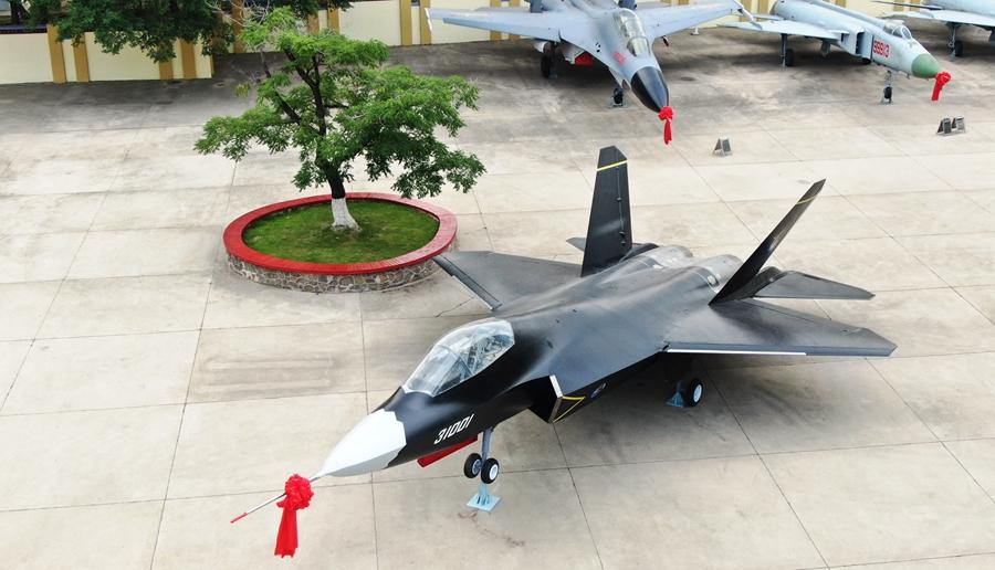 這是2021年6月24日在航空工業(yè)沈飛航空博覽園拍攝的“鶻鷹”戰(zhàn)機(無人機照片)。新華社記者 楊青 攝