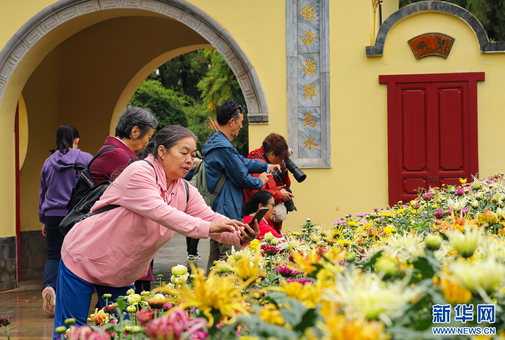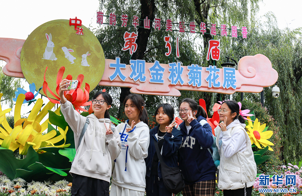 前來大觀公園觀賞菊花的游客(10月1日攝)。鄭益/攝