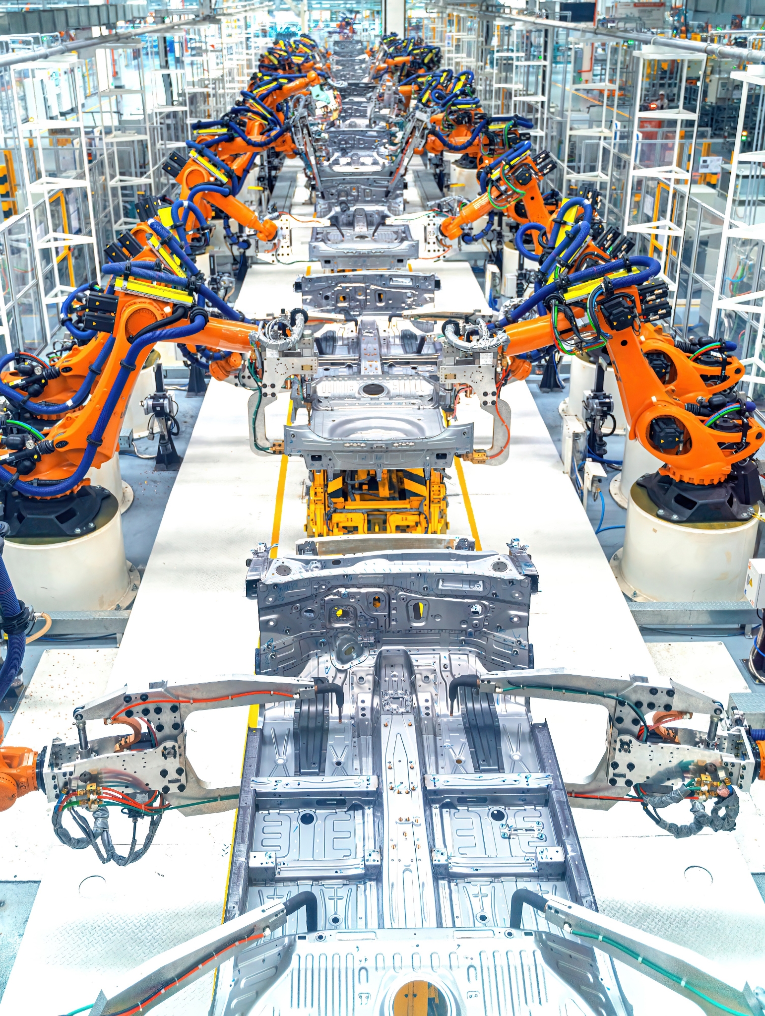 現(xiàn)代化的汽車制造廠焊接裝配線。(圖/視覺中國)